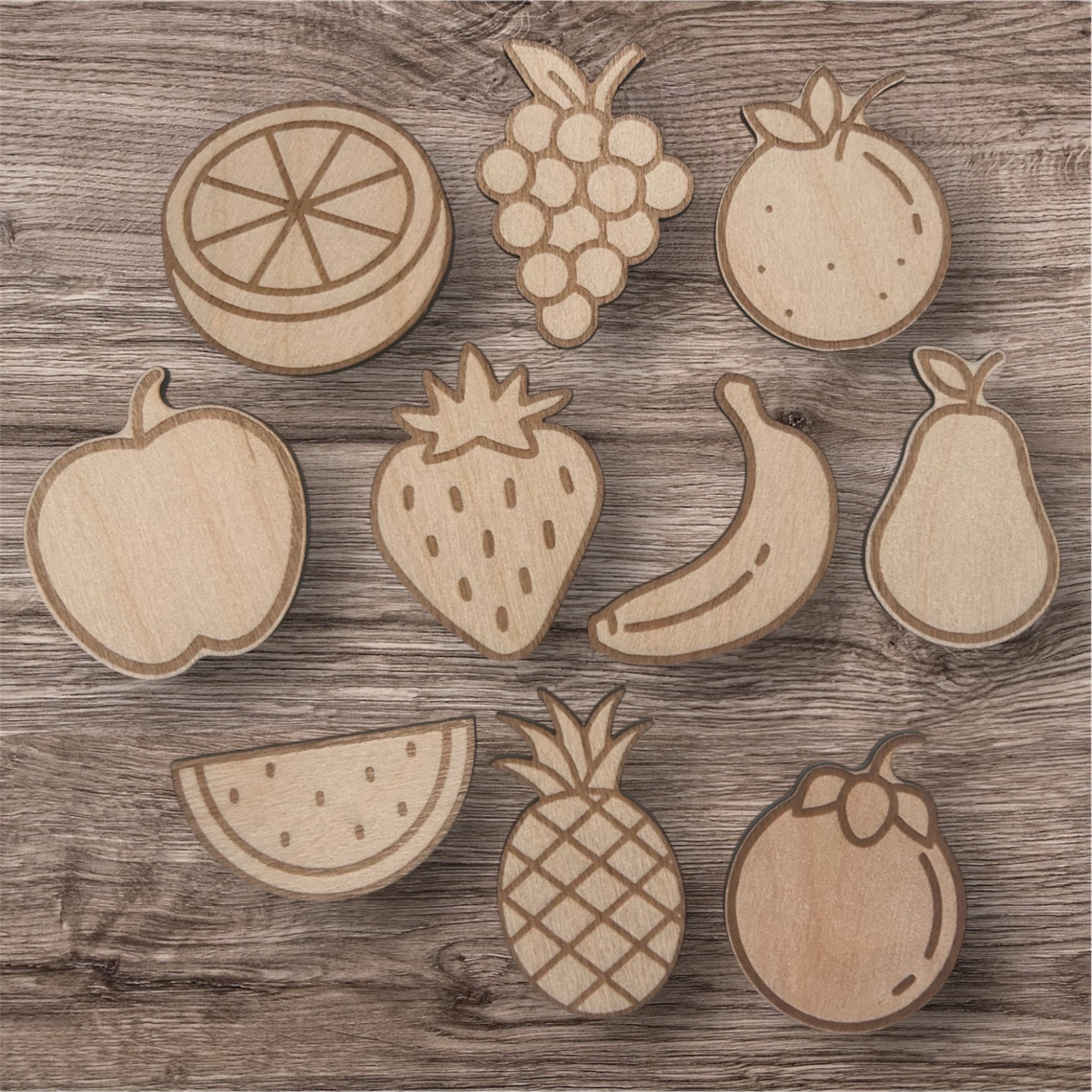 Houten themavormpjes - fruit